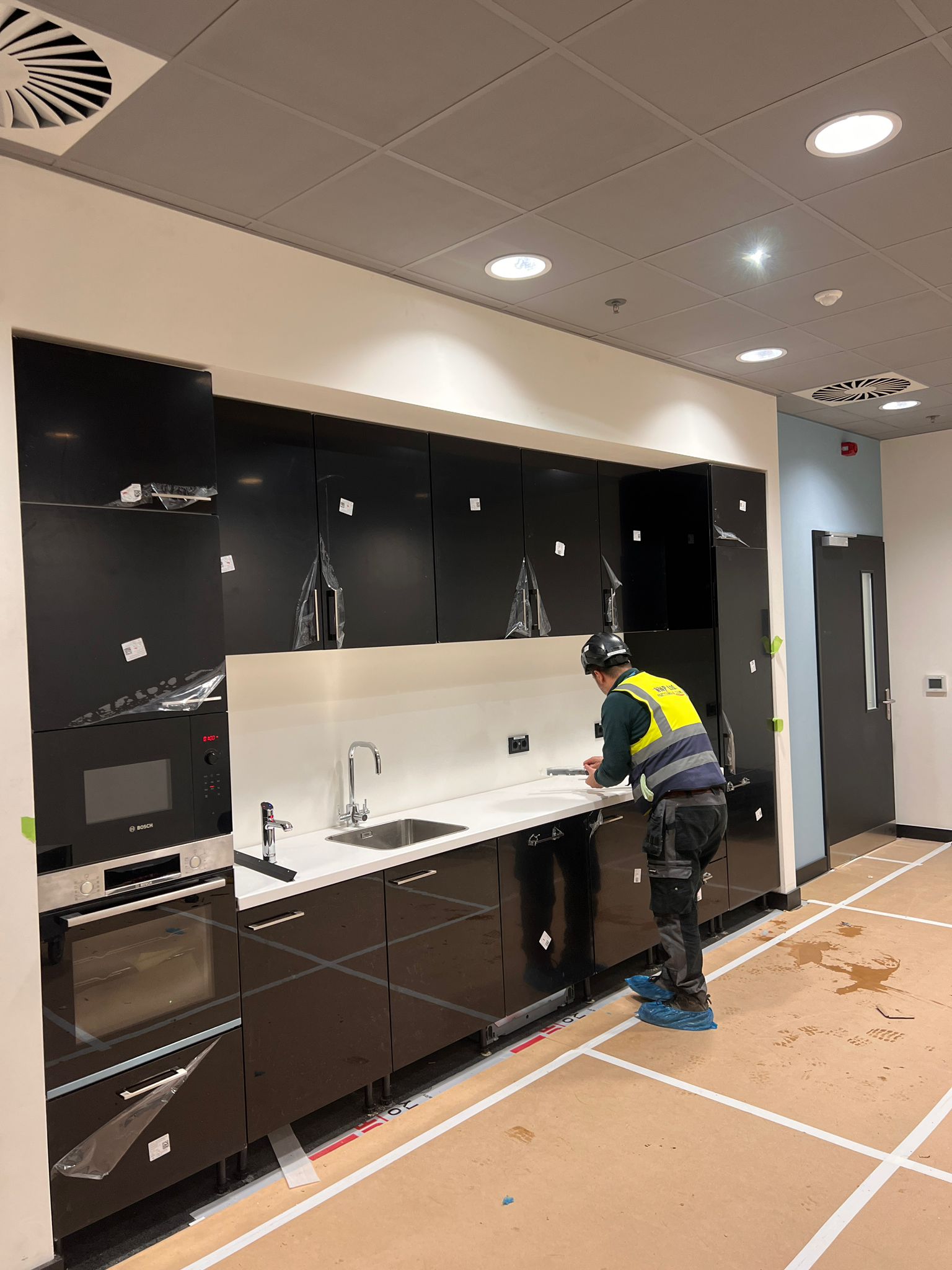 Kitchens, Sanitary ware inc. cubicles and tiling, carpet tiles & vinyl flooring, skirting and office
